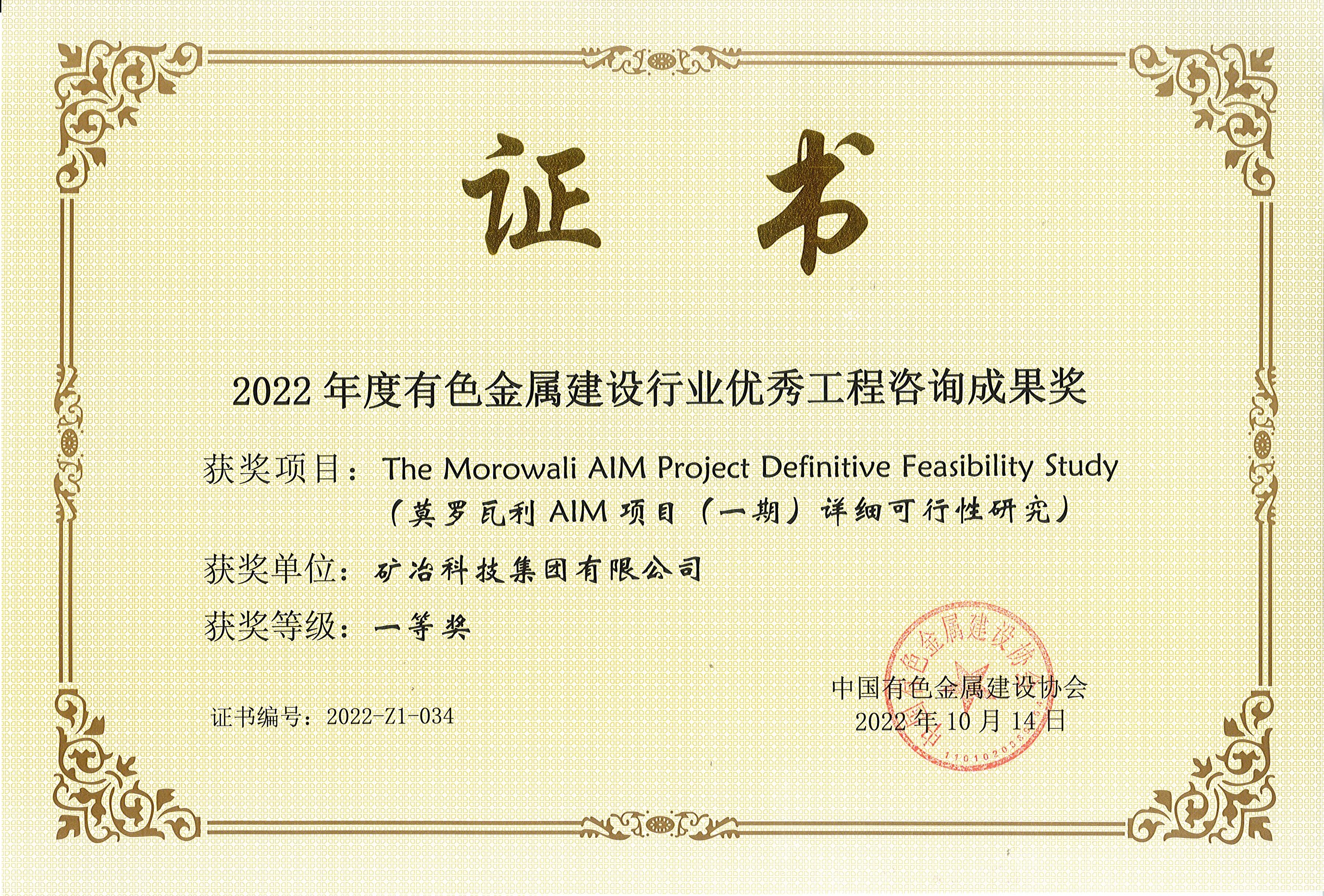 The Morowali AIM Project Definitive Feasibility Study(莫罗瓦利AIM项目(一期)详细可行性研究)